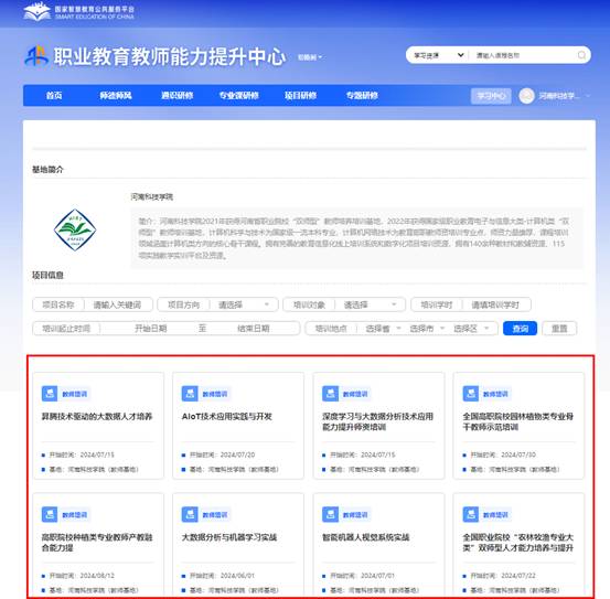 根据《关于组织国家级职业教育培训基地开展2024年培训的通知》(教师司函〔2024〕6号)文件精神,河南科技学院积极申报,成功获批国家级职业教育“双师型”教师培训项目11项。欢迎各位老师踊跃报名,7月我们在美丽的南太行山下-河南新乡等着您!
