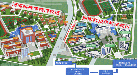 五、考试地点:河南科技学院东校区弘德楼 (东明大道东侧)(详见附图)