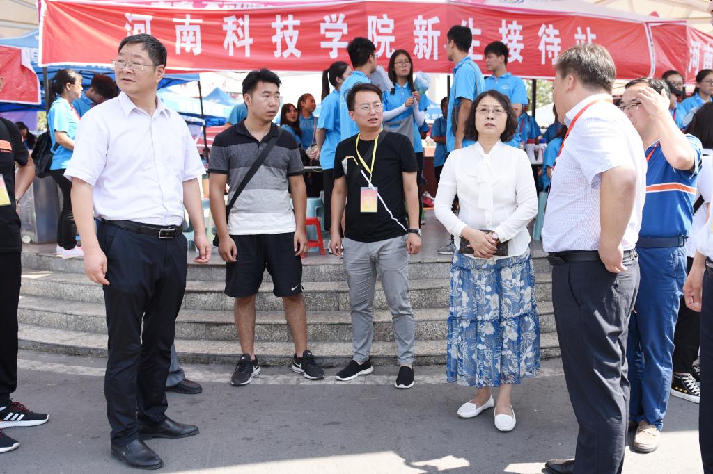 9月7日下午和9月8日上午,校领导周志远、李成伟、宋亚伟、冯启高、贺杰、王霞、贾积身等在党委办公室、校长办公室、党委宣传部、党委学工部(学生处)、校团委、后勤服务中心、保卫处等相关单位负责人的陪同下,来到迎新现场,看望慰问工作人员,并与新生及家长亲切握手交谈。每到一个学院,校领导都仔细询问迎新进展情况,嘱咐他们要认真负责地做好新生接待服务工作,努力做到让家长安心、新生满意。在与新生家长交谈过程中,校领导表示,感谢他们对学校的信任和支持,学校一定会对学生的成长成才负责,请家长朋友们放心。