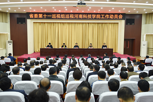 根据省委统一部署,省委第十一巡视组进驻从11月1日至12月20日对我校开展巡视。11月2日上午,第十一巡视组在河南科技学院召开巡视工作动员会,巡视组组长、正厅级巡视专员李阳受省委巡视工作领导小组委托,对巡视工作提出了明确要求,巡视组副组长、副厅级巡视专员范晓音作了动员讲话,校党委书记周志远主持会议并代表学校党委及领导班子作了表态发言。