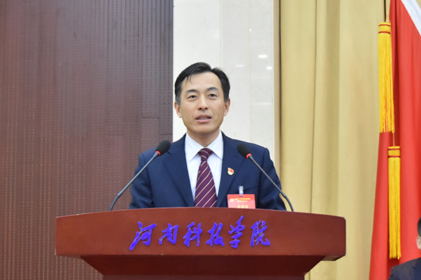 高治军代表省委高校工委、省教育厅,向大会的召开表示热烈的祝贺。他指出,近八十年来,河南科技学院秉承“艰苦奋斗,自强不息”的精神,坚持为党育人、为国育才,锻造形成了鲜明的办学特色和办学风格,为党和国家做出了自己的贡献。此次大会,是河南科技学院在新时代改革发展的关键时期召开的一次重要会议,既是师生政治生活中的一件大事,更是学校党的建设和改革发展历程中的一件要事,对于全面总结学校发展经验,认真研判学校发展形势,科学谋划学校发展战略,进一步凝聚师生员工智慧和力量,实现学校高质量快速发展,具有重大而深远的意义。希望各位代表认真履职尽责,把这次大会开成统一思想、凝聚共识的大会,发扬民主、求真务实的大会,振奋精神、促进发展的大会。希望河南科技学院继续坚持以习近平新时代中国特色社会主义思想为指导,深入学习贯彻党的十九大精神,紧紧围绕为谁培养人、培养什么样的人、怎样培养人这个根本问题,全面贯彻党的教育方针,旗帜鲜明地坚持党对学校工作的全面领导,落实立德树人根本任务,坚持“以本为本”、推进“四个回归”,培养德智体美劳全面发展的社会主义事业建设者和接班人。坚持问题导向和目标导向,不断更新教育理念,深化综合改革,从师生最关心的热点难点问题和制约学校发展的关键因素入手,敢于先行先试,勇于克难攻坚,冲破思想观念束缚,破除体制机制障碍,聚焦自身特色和优势,努力谱写新时代华丽新篇章。继续坚持立足中原、面向全国,把自身发展同国家发展、社会需求紧密结合,积极响应“一带一路”倡议,对接“三区一群”建设等国家战略,为河南经济社会发展供强有力的人才保障和智力支持。