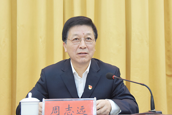 周志远代表学校领导班子述职。2018年,我校领导班子坚持以习近平新时代中国特色社会主义思想为指导,深入学习贯彻党的十九大精神、全国教育大会精神,坚持以党建高质量促进学校事业发展高质量,团结带领全校师生员工砥砺奋进、真抓实干,保持了校园和谐稳定,推进了各项重要事项、重点工作顺利完成,推动了各项事业长足发展。周志远从政治建设不断加强、思想建设不断强化、基层基础不断夯实、作风建设持续向好、监督执纪更加有力五个方面总结了学校党的建设取得的重要成绩。在事业发展方面,他主要从深化综合改革、人才培养、学科建设、科技创新、师资队伍建设、团学和招生就业工作、对外交流与合作服务工作、新东区征地等基础能力建设、后勤保障及服务民生等方面进行了详细汇报。周志远表示,面对新形势新任务,学校将继续坚持以习近平新时代中国特色社会主义思想为指导,围绕学校第五次党代会确定的目标,继续发扬艰苦奋斗精神、保持昂扬向上精神状态、强化改革创新举措,努力推动学校事业更高质量发展,为早日建成区域特色骨干大学、助力中原更加出彩而努力奋斗!