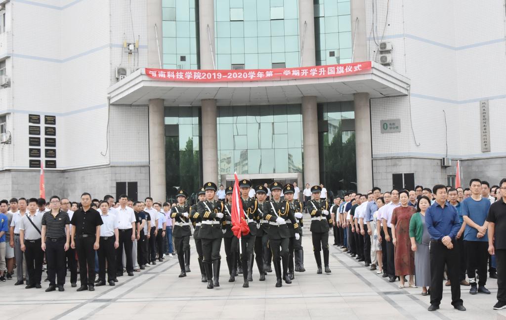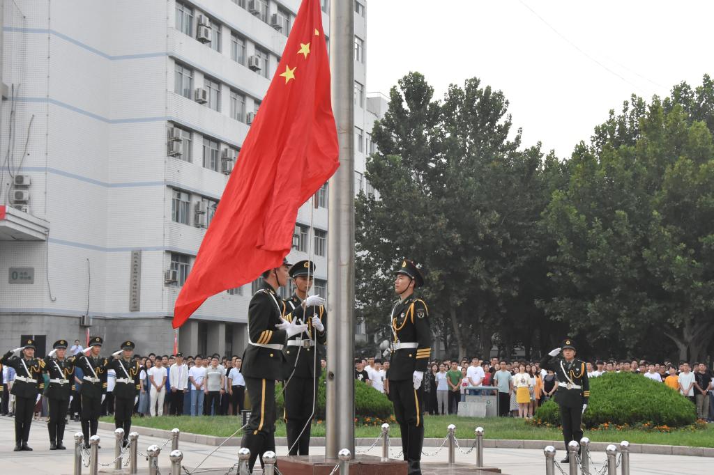 9月2日,迎着初升的阳光,满怀着信心与希望,我校在致远广场举行了新学期升国旗仪式。校领导周志远、李成伟、宋亚伟、杨松璋、冯启高、苗双虎、贺杰、王霞、贾积身出席升旗仪式,全校中层领导干部、各学院师生代表参加了升旗仪式。
