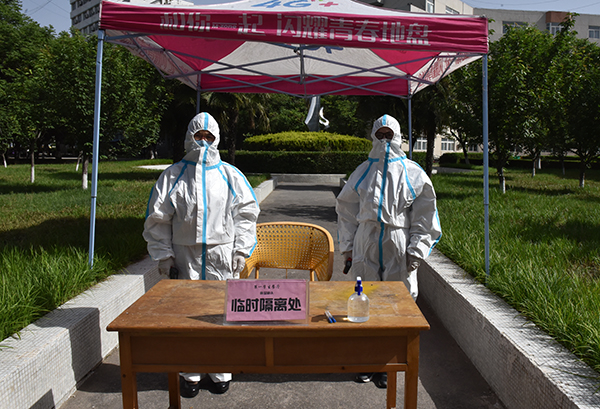 此次演练共分返校入门关、入校报到关、餐厅就餐关、课堂授课关、返寝入舍关、发热隔离医学观察关等“六关”,并在相关场所设置了测温点、排队间隔线和临时留观点,组织开展了相关场景的正常流程演练。