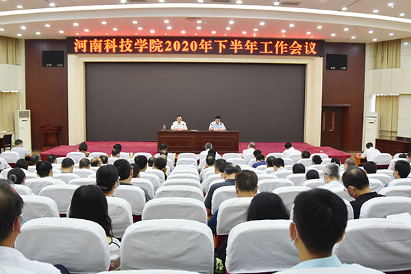 校长李成伟从疫情防控工作成效显著,党的建设、精神文明与思想政治工作扎实推进,学校综合改革和新科学院转型发展顺利完成,人才培养质量持续提升,师资队伍建设进一步加强,科技创新水平不断提高,学科建设和研究生教育取得新突破,学团和招生就业工作取得新成效,对外交流与社会服务扎实推进,后勤保障及服务民生能力不断加强等十分方面总结回顾了上学期和暑假工作,对2020年下半年学校工作进行了安排部署,要毫不松懈地做好新冠疫情防控工作、锲而不舍地继续深化综合改革、认真做好“十三五”规划收官和“十四五”规划编制工作、扎实推进省特色骨干学科建设工作、稳步提升教学质量和人才培养水平、继续加大对外交流与合作力度、持续提升校园基本建设及财务保障能力等。