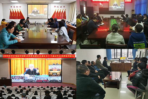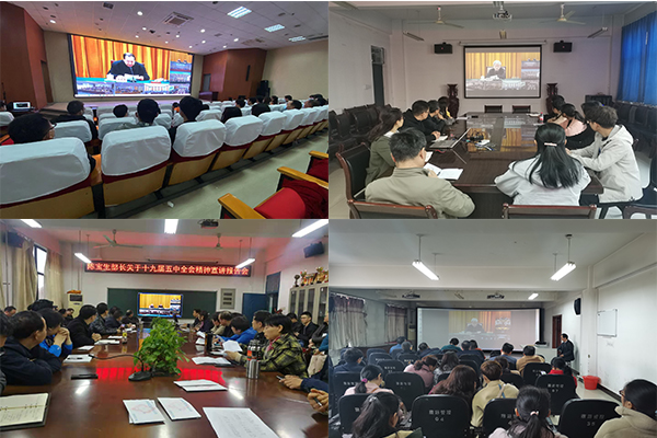 11月11日下午,教育部举办教育系统党的十九届五中全会精神宣讲报告视频会。中央宣讲团成员、教育部党组书记、部长陈宝生作党的十九届五中全会精神宣讲报告。11月12日下午,我校组织各基层党委、党总支认真收看学习贯彻党的十九届五中全会精神中央宣讲团报告视频。