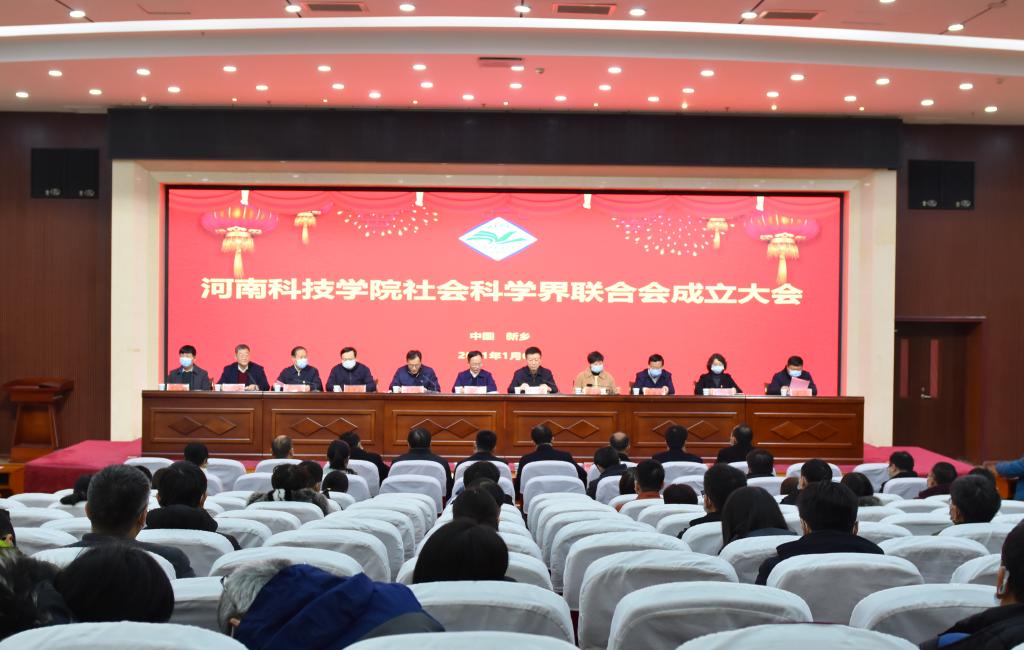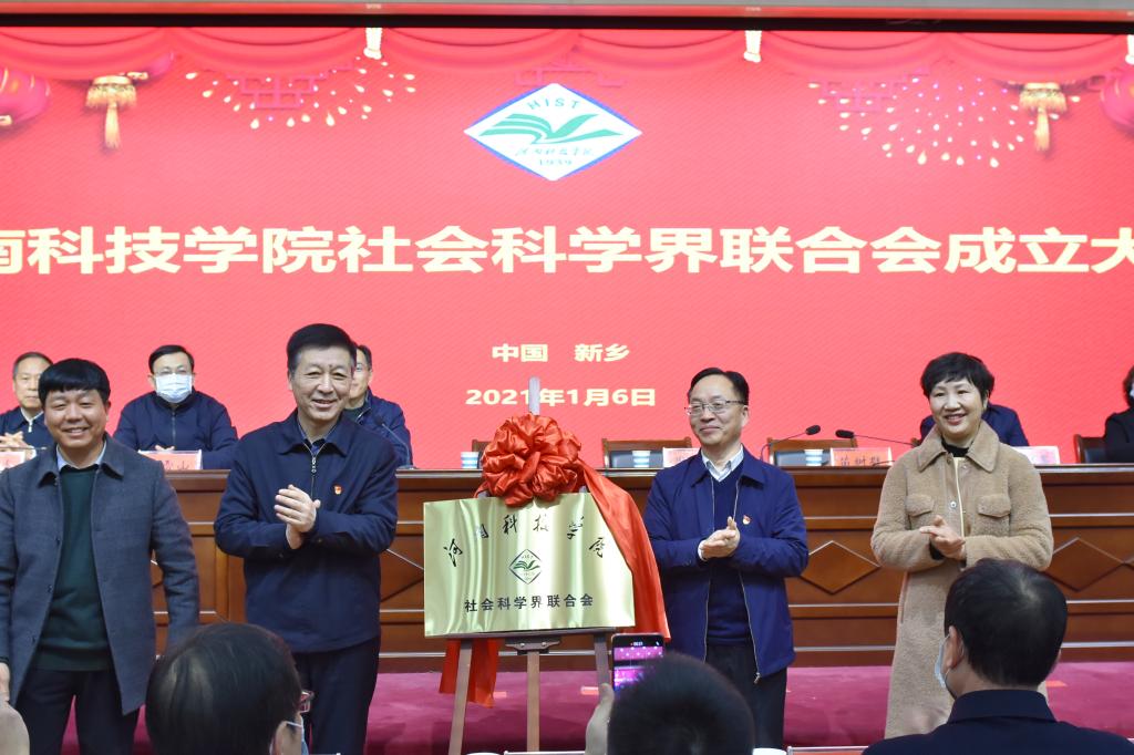 1月6日上午,我校在行政楼308报告厅召开校社会科学界联合会成立大会并举行揭牌仪式。河南省社会科学界联合会党组书记、主席李庚香,河南省社科联副主席苗树群,河南省社科联普及处处长、一级调研员李明;河南师范大学党委常委、副校长、社科联主席李雪山;新乡医学院党委副书记、社科联主席郝红军及我校党委书记周志远,校长李成伟,校党委副书记苗双虎,副校长王霞,副校长、校社科联主席贾积身出席会议,新乡市社科联负责人及我校社科联第一届委员会主席、副主席、委员,各学院院长、副院长和教师代表200余人参加会议。