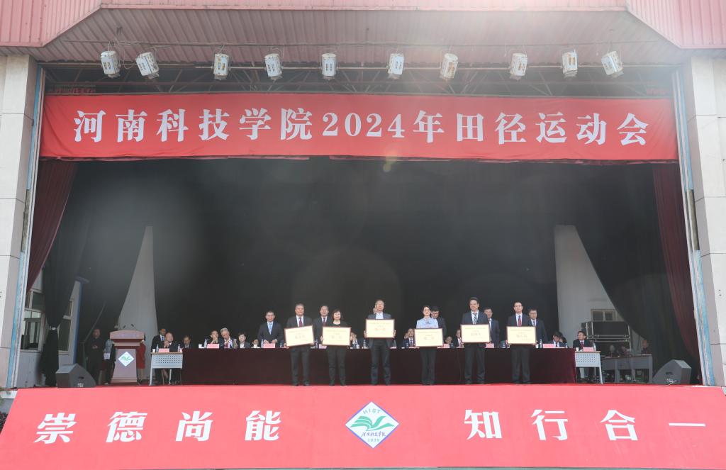 4月17日,我校2024年田径运动会在西校区运动场开幕。校领导宋亚伟、姚刚、冯启高、贺杰、胡铁柱、王洪亮、马金友出席开幕式,校体育运动委员会各成员单位负责人、裁判员、运动员及师生代表参加了开幕式。开幕式由校党委副书记、工会主席姚刚主持。