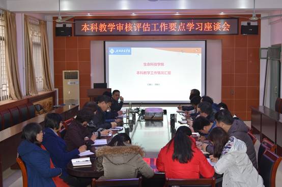 为深入推进学校本科教学工作审核评估,扎实做好本科教学审核评估的迎评工作,12月3日下午,生命科技学院在E110会议室召开了迎评工作座谈会。生命科技学院党政领导班子、系主任、教研室主任及教师代表参加了会议。