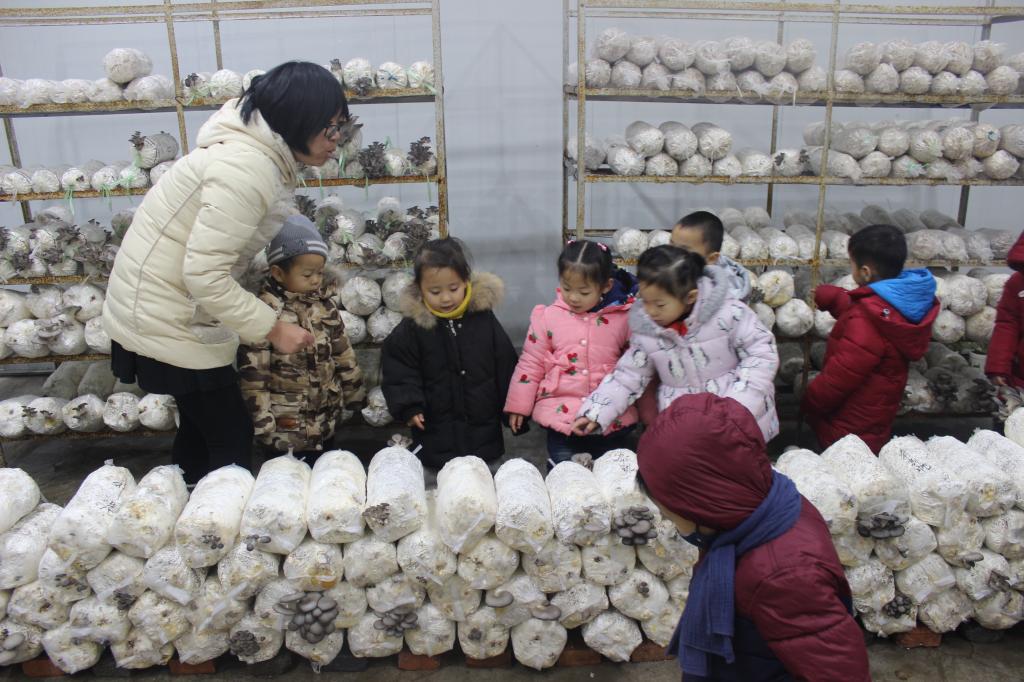为丰富校幼儿园儿童课外活动,激发孩子们探索科学的兴趣,12日上午9时,校幼儿园小1班、小2班和小3班共60名小朋友在12位幼儿园老师的带领下参观了我院食用菌实训基地。