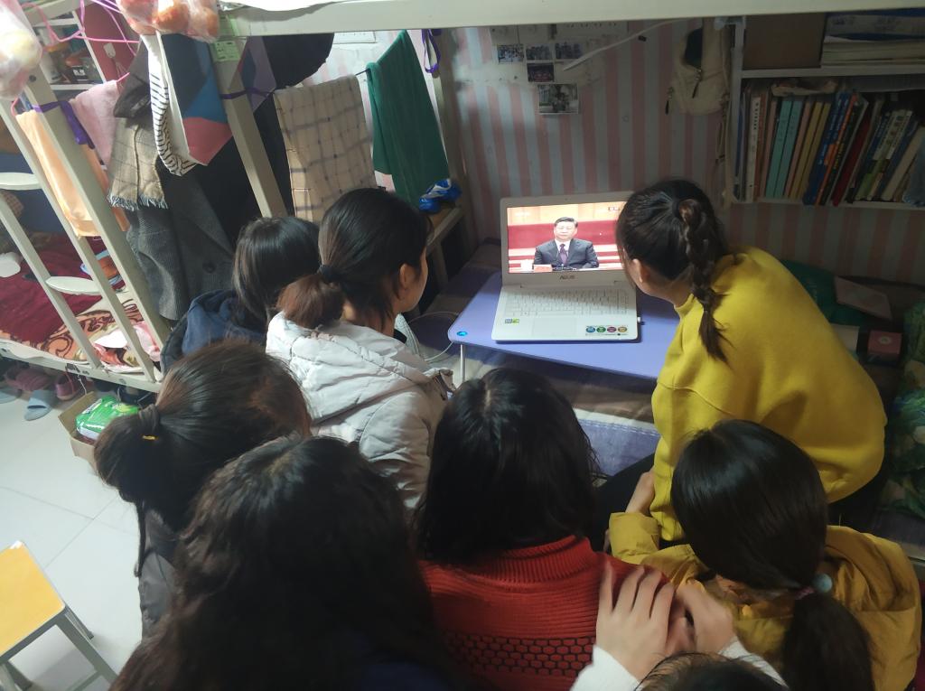 此外,我院还组织没有教学课程的学生以班级为单位集中收看大会盛况。