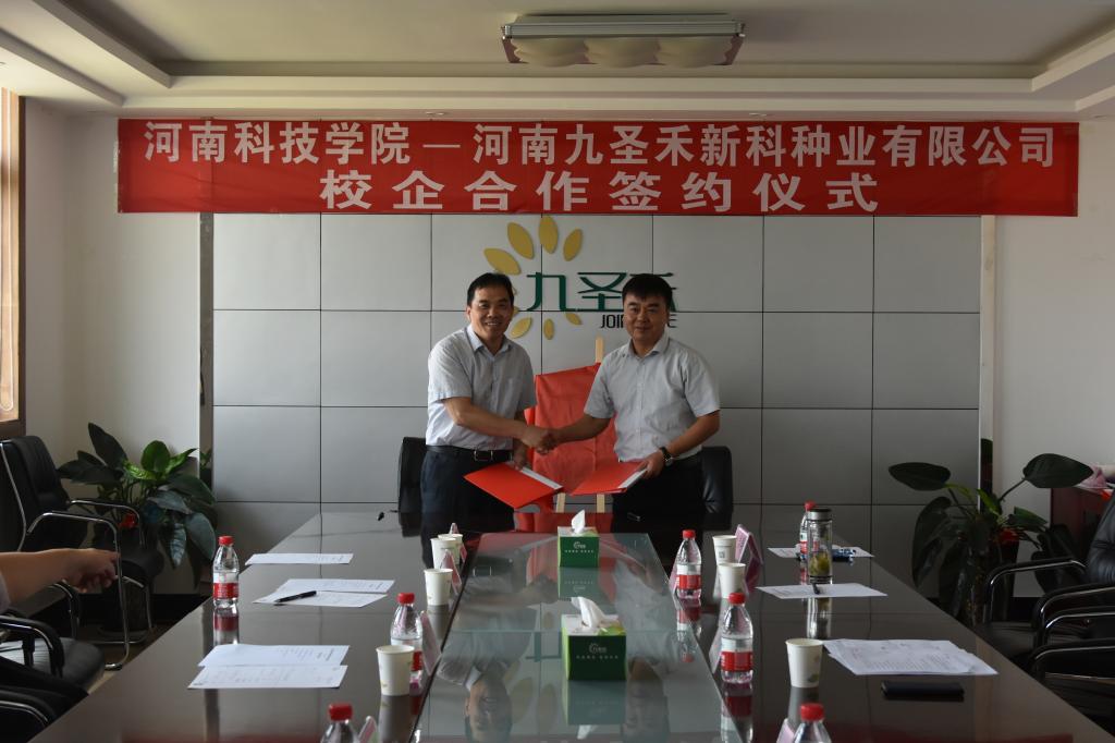 这次签约,标志着生命科技学院和河南九圣禾新科种业有限公司正式达成了全面战略合作。双方将在实践实习、联合研发、协同创新、共建产教融合实训基地等方面开展务实合作,有力推动我院人才培养和就业实习实训基地建设,更好地服务学院和地方发展。