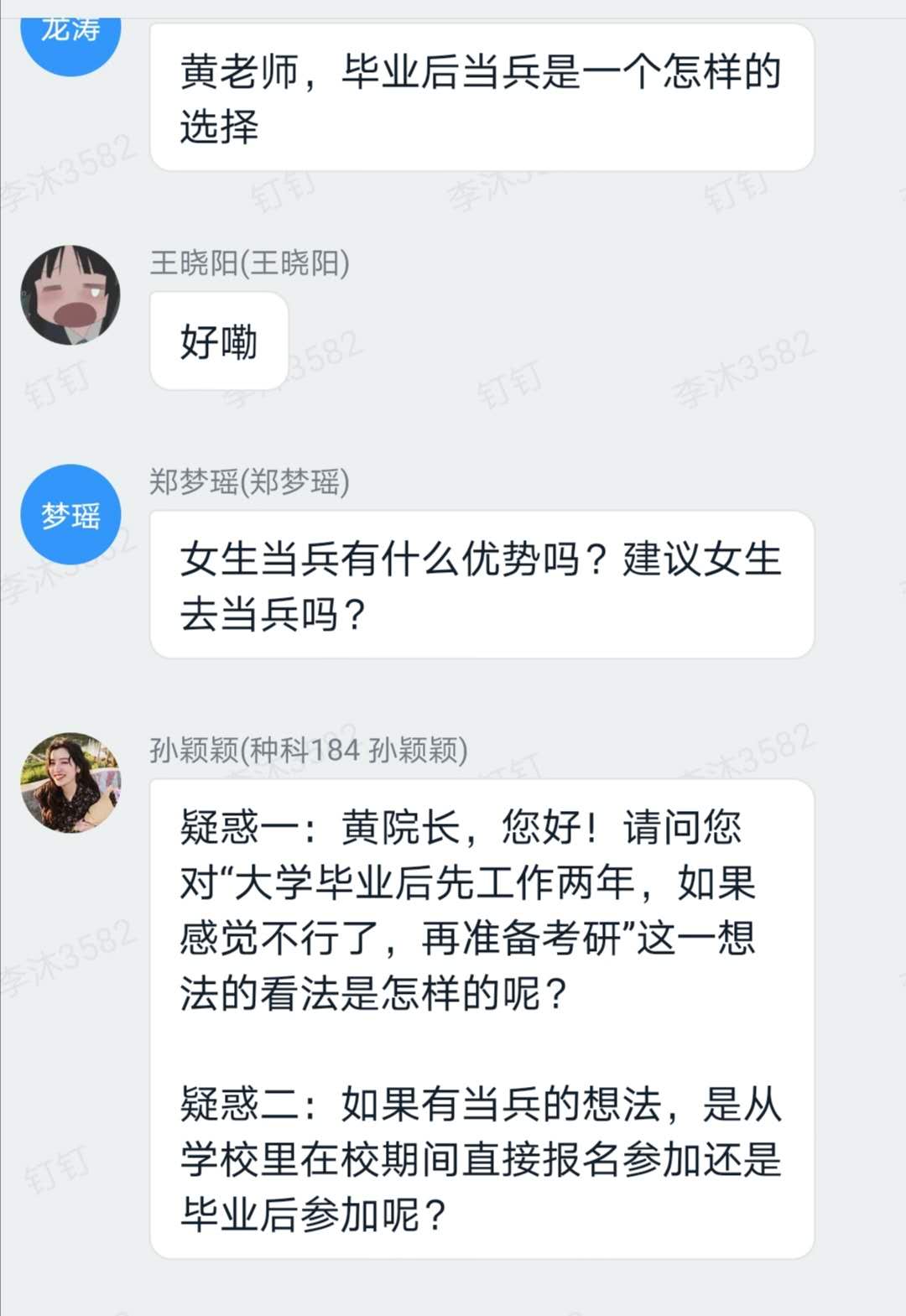 6月15日晚7点,我院通过钉钉平台开展第一期线上学习辅导答疑活动。副院长黄中文教授与500多名同学进行了面对面、零距离的线上交流,针对同学们学业上的问题答疑解惑,与同学们共话人生理想。