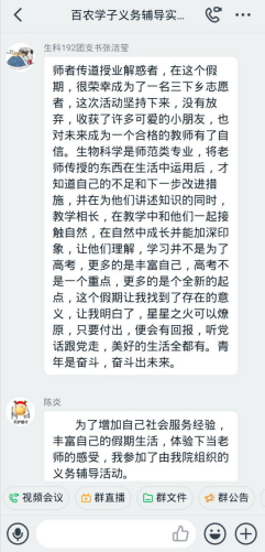 为引领青年学子学习贯彻总书记关于青年工作的重要思想,切实将思想政治引领元素融入团的各类工作形态,形成全方位育人新格局。8月19日,生命科技学院按照团省委、校团委的安排部署,在暑期“三下乡”社会实践团队中开展“小我融入大我,青春献给祖国”主题团日活动。
