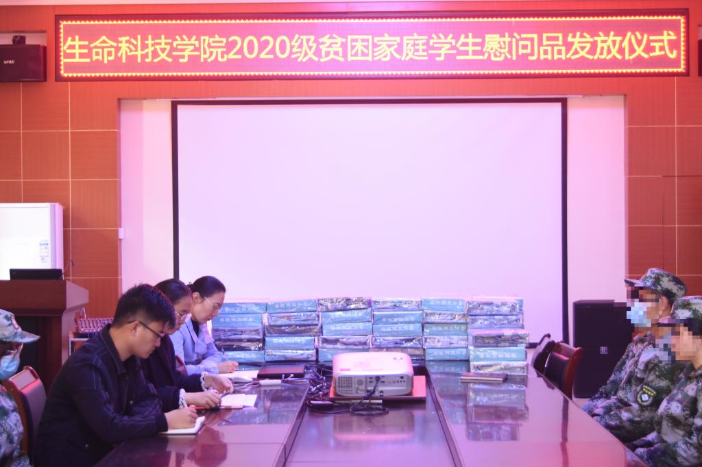在国际消除贫困日和我国第七个国家扶贫日到来之际,为让经济困难大学生感受到学校和社会的关爱与温暖,10月17日中午,我院在实验楼E段110会议室举办生命科技学院2020级贫困家庭学生慰问品发放仪式。学院团委书记李鹏、辅导员李沐、周旋出席会议,2020级建档立卡及低保同学参加了会议。