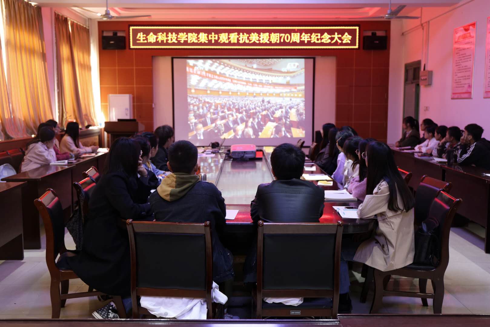 10月23日上午,生命科技学院组织广大师生收看纪念中国人民志愿军抗美援朝出国作战70周年大会,认真学习习近平总书记重要讲话精神。学院在实验楼E段110会议室设主会场,以党支部为单位多种形式开设分会场。