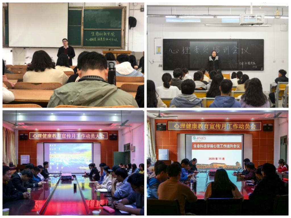 为进一步加强心理健康教育工作,确保我院学生身心健康和谐发展,11月2日—4日,生命科技学院以年级为单位召开2020年心理健康教育宣传月工作动员会。会议由各年级辅导员组织并主讲,班级心理委员、宿舍长参加了会议。