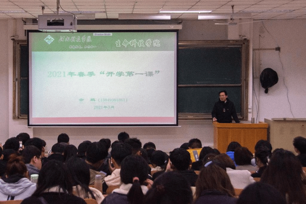 3月18日、22日,生命科技学院党委书记余鹏分别在零号楼合三、合四教室为2018级学生讲授春季学期“开学第一课”。