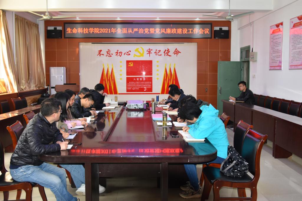 4月8日上午,生命科技学院在实验楼E段110会议室召开2021年全面从严治党暨党风廉政建设、意识形态工作会议。学院党政班子成员、各支部书记参加会议。
