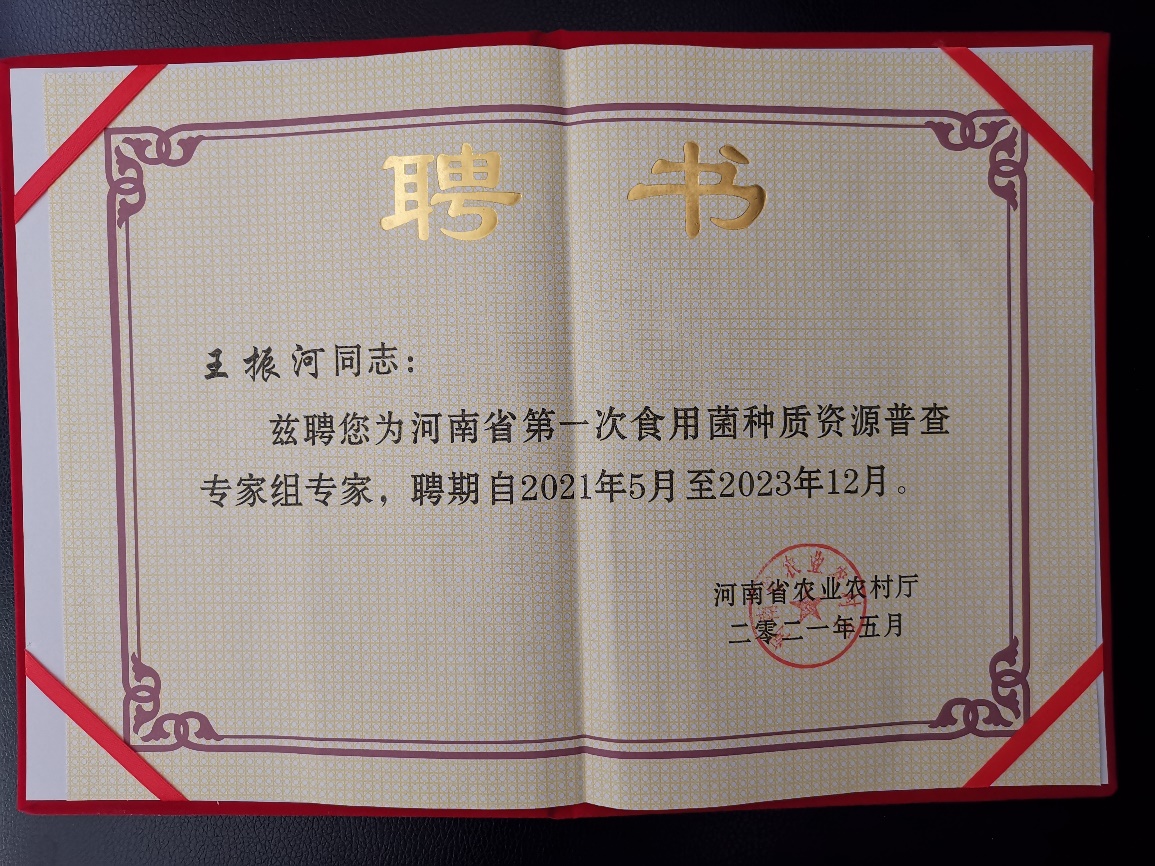 会上,省经作站站长郑乃福传达了河南省农业农村厅《关于成立第一次河南省食用菌种质资源普查技术专家组的通知》,我校王振河教授被聘为技术专家组第二专业组副组长,张朝辉、张广两位博士被聘为技术专家组专家。他们将全面参与我省食用菌种质资源普查工作。