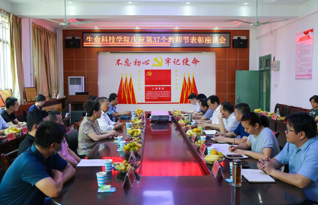 赓续百年初心,担当育人使命。9月10日下午,生命科技学院庆祝第37个教师节表彰座谈会在学院E110会议召开,学院党政班子成员、教师代表和部分学生代表参加了会议。