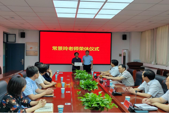 会上,学院执行院长杨天佑宣读荣休通知并为常景玲老师颁发荣休证书,党委副书记、分会主席邵帅为常景玲老师送上纪念品,教师代表、学生代表分别为常景玲老师献上鲜花。