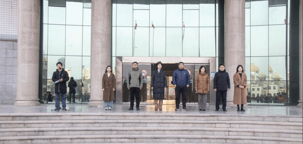 早晨7时整,晨光破晓,升旗仪式正式开始。国旗护卫队队员们步伐整齐地将国旗护送至升旗台。伴随着激昂的国歌声,五星红旗缓缓升起,迎风飘扬。师生全体肃立,面向国旗行注目礼。