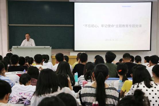 9月27日下午,在十合五教室,经济与管理学院党委举行“不忘初心、牢记使命”主题教育专题党课活动。党委书记刘刚主讲党课。全体学生党员、入党积极分子200余人听取了党课。