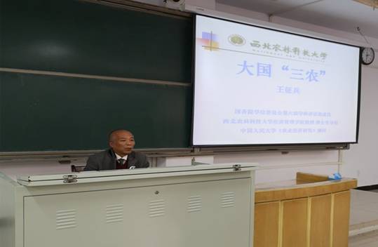 王征兵教授的报告立足中国农民数量、农业主体、农产品质量的“三农”现状,系统论述了农民贫困的根源、政府对“三农”的支持、中国“三农”的出路。王教授认为,乡村振兴是人类历史最浩大的工程,“三农”的出路,除了政府、社会的支持,还应积极培训新型农业经营主体;家庭经营模式、农产品品牌化、发展休闲农业是中国“三农”问题的解决之道。
