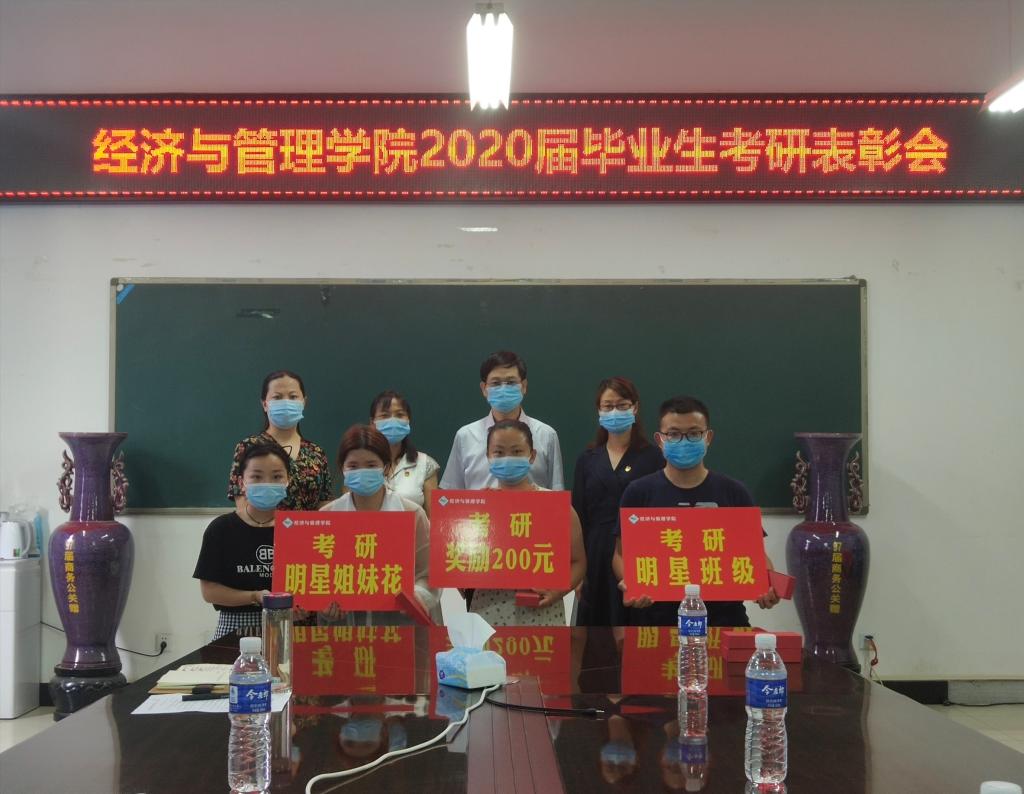 6月10日下午,经济与管理学院在10号楼202会议室举行2020届毕业生考研表彰会。学院党委书记何二毛、院长闫秀敏、副院长崔鸽、团委副书记罗鑫出席表彰会,2020届考取研究生学生代表参加会议。会议由组织员吴丹主持。