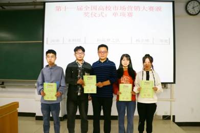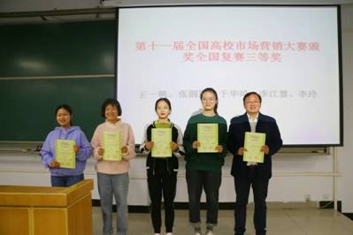 在对暑期实习周问卷调查工作做出总结并进行相关安排之后,紧接着又进行了第十一届社科奖颁奖仪式。日前,社科奖第十一届全国高校市场营销大赛全国总决赛圆满结束,本次比赛中我院组织10支团队参赛,经过单项赛、复赛、总决赛不同比赛赛道。最终获得全国单项赛一等奖1个,二等奖1个,三等奖3个;全国复赛一等奖1个,三等奖3个;全国总决赛三等奖1个,获奖学生50余人次,大赛组委会授予我校优秀组织奖单位。现场宣读获奖名单后,获奖团队分别上台,由在场评委老师颁发证书和奖牌并合影留念,在全场热烈的掌声中,本次活动圆满结束。