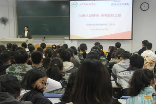吴丹以“弘扬抗疫精神 照亮起航之路”为题,围绕“如何弘扬抗疫精神”、“如何以实际行动践行抗疫精神”、“用抗疫精神照亮大学成长之路”三个方面,与全体新生做了分享和交流,对新生寄予了殷切期望,希望新同学们能够增强自身的责任与担当,做新时代有为青年。
