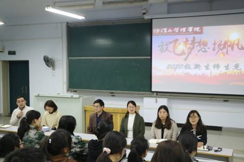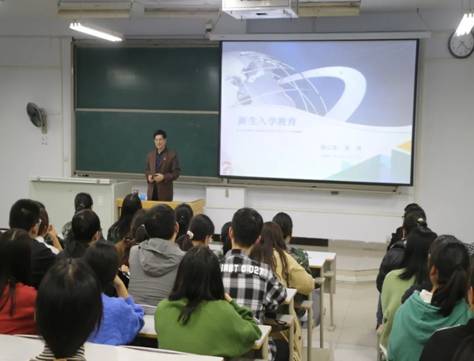 会前,举行了热烈简短的师生见面会。随后,新生入学教育报告会正式开始。