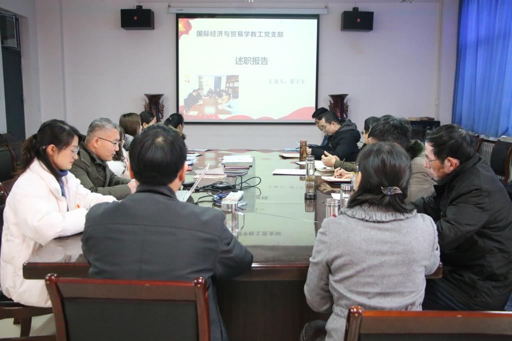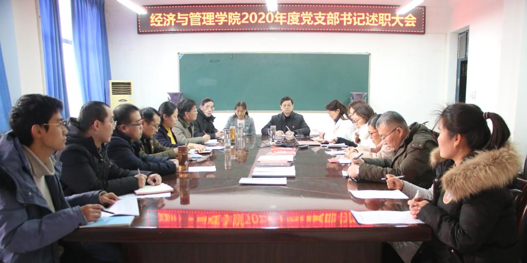 12月31日下午,经管学院于10号楼202会议室召开2020年度党支部书记述职大会。学院党委委员、各党支部书记及党员代表等参加会议。会议由院党委副书记吴丹主持。