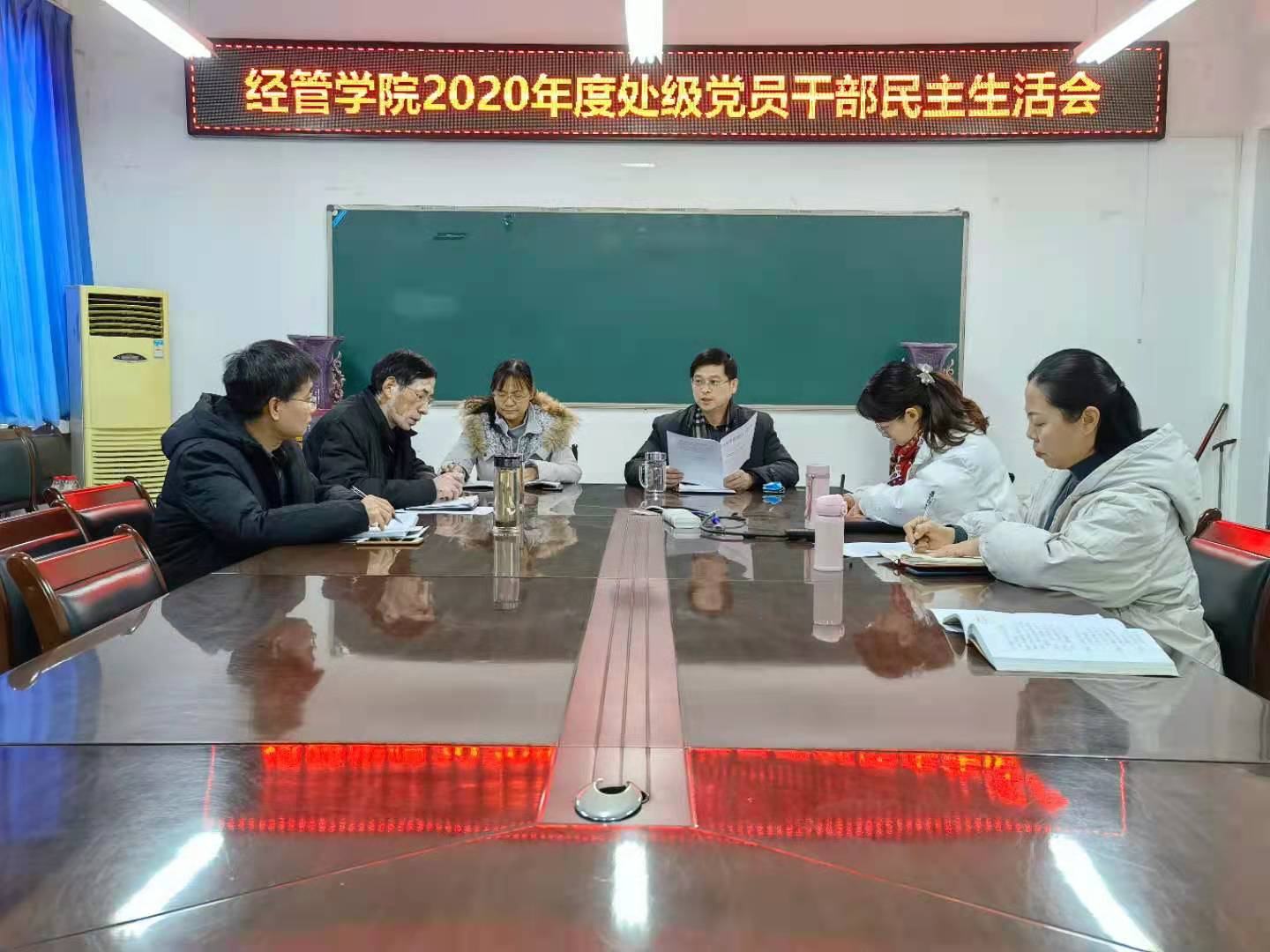 1月12日下午,经济与管理学院在10号楼202会议室召开处级党员领导干部民主生活会。会议由学院党委书记何二毛主持。院长闫秀敏,党委副书记吴丹,副院长郎群秀、张宏军、崔鸽出席了会议。
