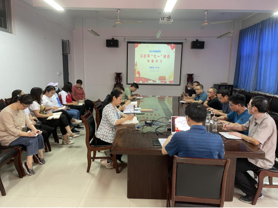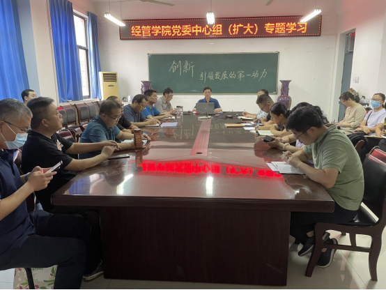 9月23日下午,经济与管理学院在十号楼202会议室举行党委中心组(扩大)专题学习会,党委书记何二毛宣讲习近平总书记“七一”重要讲话精神。学院班子成员、各教研室主任、党支部书记参加了本次宣讲会。