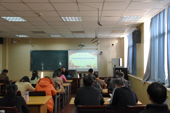 会上,何二毛传达了学校第五次科技工作会议精神,总结了学院荣获“科技工作先进单位”,学院教师陈军民、焦小静分别荣获“校优秀科技工作者”、“青年科技英才”称号等科研成绩。他强调,学院全体教师要以学校第五次科技工作会议为契机,认真学习领会会议精神,切实增强做好科技创新工作的紧迫感和使命感,向身边的先进典型学习,鼓足干劲、力争上游,全面推进学院科技创新工作再上新台阶。