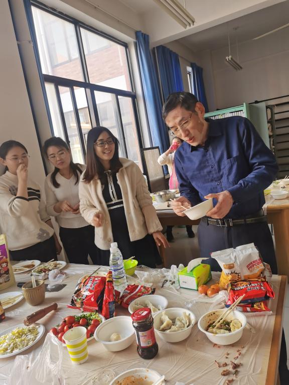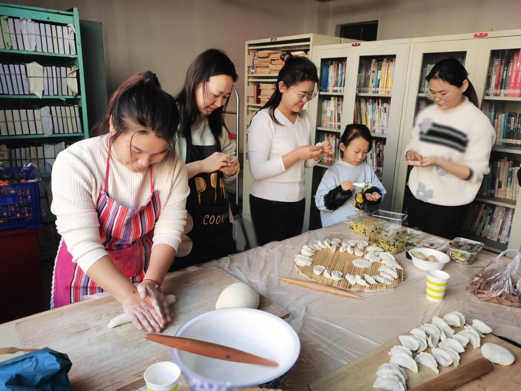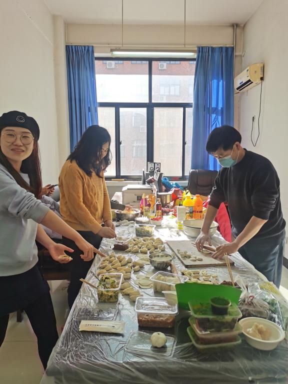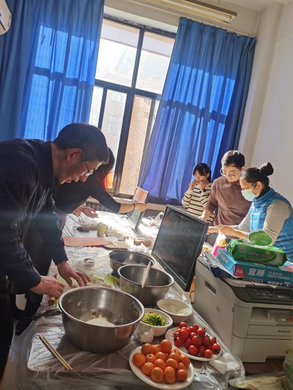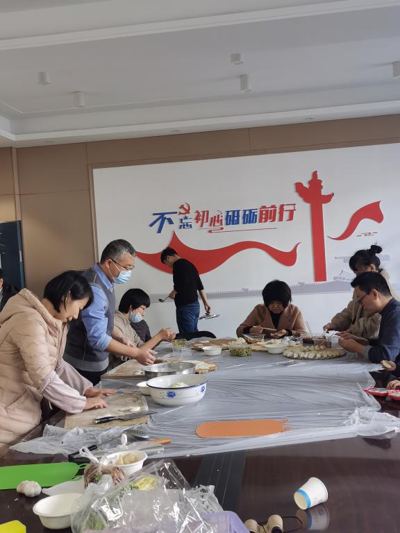 活动开始,大家纷纷拿出自带的炊具案板、菜刀、擀面杖等,各位老师根据自己的特长开始大显身手,有和面的、擀皮的、包饺子的,欢声笑语弥漫在整个楼层。待香气四溢的饺子出锅后,各位老师都非常热情地去品鉴其他工会小组包的饺子,并将自己工会小组的饺子分享给其他老师。大家有说有笑、其乐融融,一起提前过了一个意义非凡的冬至。
