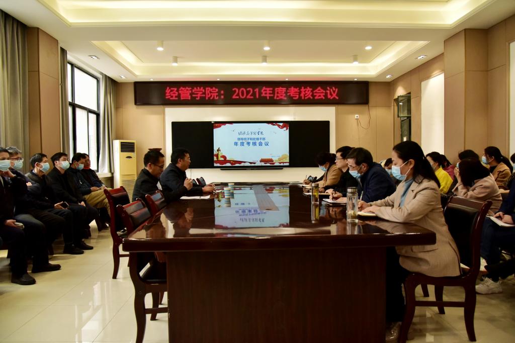3月3日下午,经济与管理学院在10号楼202会议室召开2021年度处级领导班子和领导干部考核会议。校党委办公室主任孙俊良、党委统战部统战科科长雷晓环,学院领导班子及全体教师参加会议,会议由孙俊良主持。