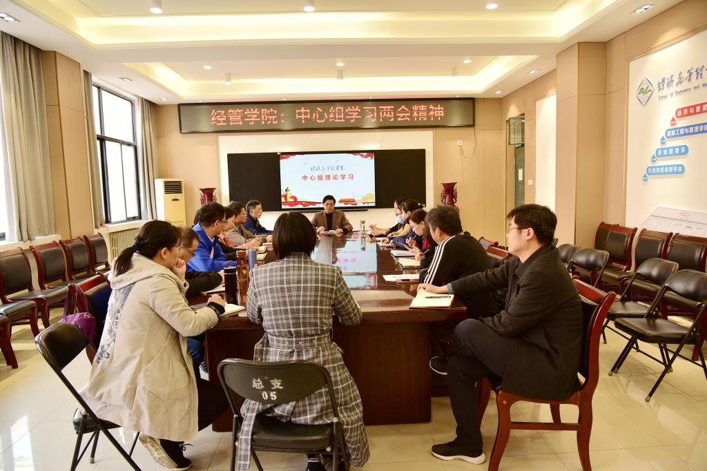 3月11日下午,经济与管理学院在10号楼202会议室召开党委中心组(扩大)理论学习会议,集中学习全国“两会”精神。院党委书记何二毛主持会议,中心组全体成员和科级以上干部参加学习。