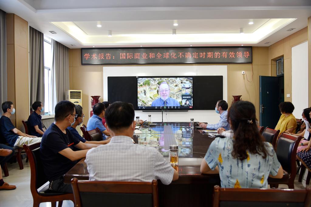 6月10日下午,经济与管理学院和国际教育学院联合邀请英国牛津大学Chris Rowley教授以Zoom会议形式作题为“Effective Leadership in Uncertain Times For International Business & Globalisation(国际商业和全球化不确定时期的有效领导)”的学术报告,50余位教师线下线上听取报告。报告会由经济与管理学院副院长崔鸽教授主持。