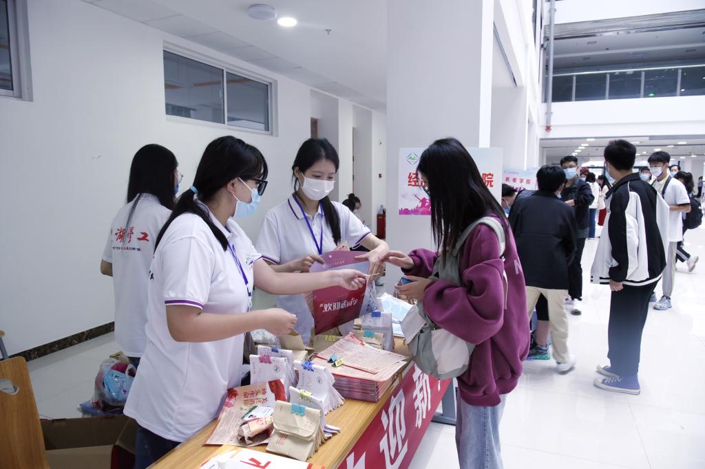 为让2022级新生感受到经管大家庭的温暖,学院提前为新生定制了蕴含学校和学院文化元素的“迎新大礼包”,包含印有学校风景和学院寄语的明信片文件袋,里面装有新生入学须知,心理健康知识宣传页、安全教育宣传页、防疫物质等,既实用又蕴含深意。国庆假期期间,学院领导和辅导员带领学生干部加班加点,连夜分装,确保627个新生顺利拿到“迎新大礼包”。
