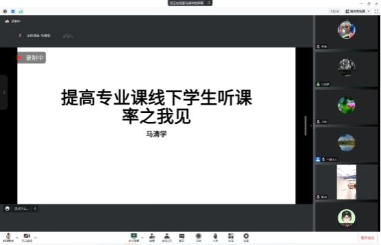 为提升教师教学能力及教育教学质量,11月17日下午,经济与管理学院组织了新文科背景下教学能力提升工程系列讲座之“提高专业课线下学生听课率之我见”。讲座由我院副院长郎群秀教授主持,马清学教授主讲,以腾讯在线讲座的形式进行,学院党政领导和全体教师参加了讲座。