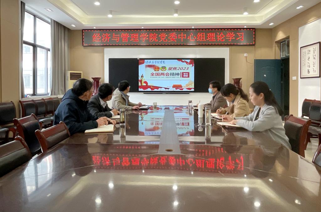 3月29日下午,经济与管理学院在10号楼202会议室召开党委理论学习中心组会议,专题学习党的二十届二中全会和全国两会精神,党委理论学习中心组全体成员参加集中学习。