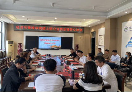 5月19日下午,黄山学院经济管理学院院长赵士德,河南牧业经济学院经济与贸易学院院长李光,商丘师范学院经济管理学院院长张保胜,平顶山学院经济管理学院副院长杨玉敬及平顶山市产业发展研究院院长李宁,安阳工学院会计学院副院长史建军,新乡学院商学院副院长李晓红及科研秘书韩丽娜、管理学院教学秘书李元晖、《管理学刊》编辑张永芳,郑州科技学院财经学院副院长周永新一行莅临我院就硕士研究生联合培养等进行研讨交流。经济与管理学院党委书记何二毛、院长崔鸽、副院长张红岩以及部分研究生导师代表参加,会议由张红岩主持。