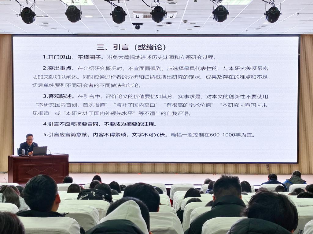 副院长陈军民针对本科生毕业论文撰写规范作了专题辅导报告,他从“毕业论文的问题意识”“开题报告撰写”“毕业论文撰写”等三个方面详细讲解了本科学位论文指导与写作过程中存在问题,并根据国家学位论文编写准则和校毕业论文工作管理规定,对我院毕业论文撰写规范要求进行详细解读。