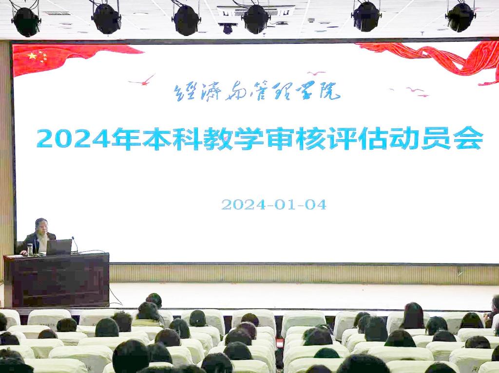 1月4日下午,经济与管理学院在图书馆1楼报告厅和10#1教室分两个会场召开本科教学审核评估动员会和本科生毕业论文指导培训会,学院班子成员、全体在校教师和2020级毕业生500余人参会。会议由执行院长崔鸽主持。