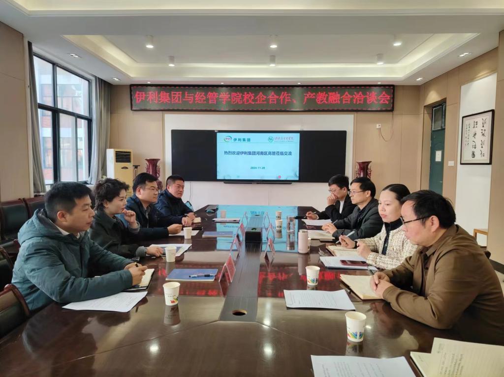 11月29日下午,伊利集团河南区高管一行到经济与管理学院洽谈合作,伊利集团河南大区行销负责人王清源、河南大区渠道总经理黄艳、豫北区域经理王延辉、新乡城市经理贾本伟,河南科技学院科技园有限公司总经理周长豪,经济与管理学院党委书记何二毛、执行院长崔鸽、新媒体电商产业学院办公室主任吴国庆等参加洽谈交流。
