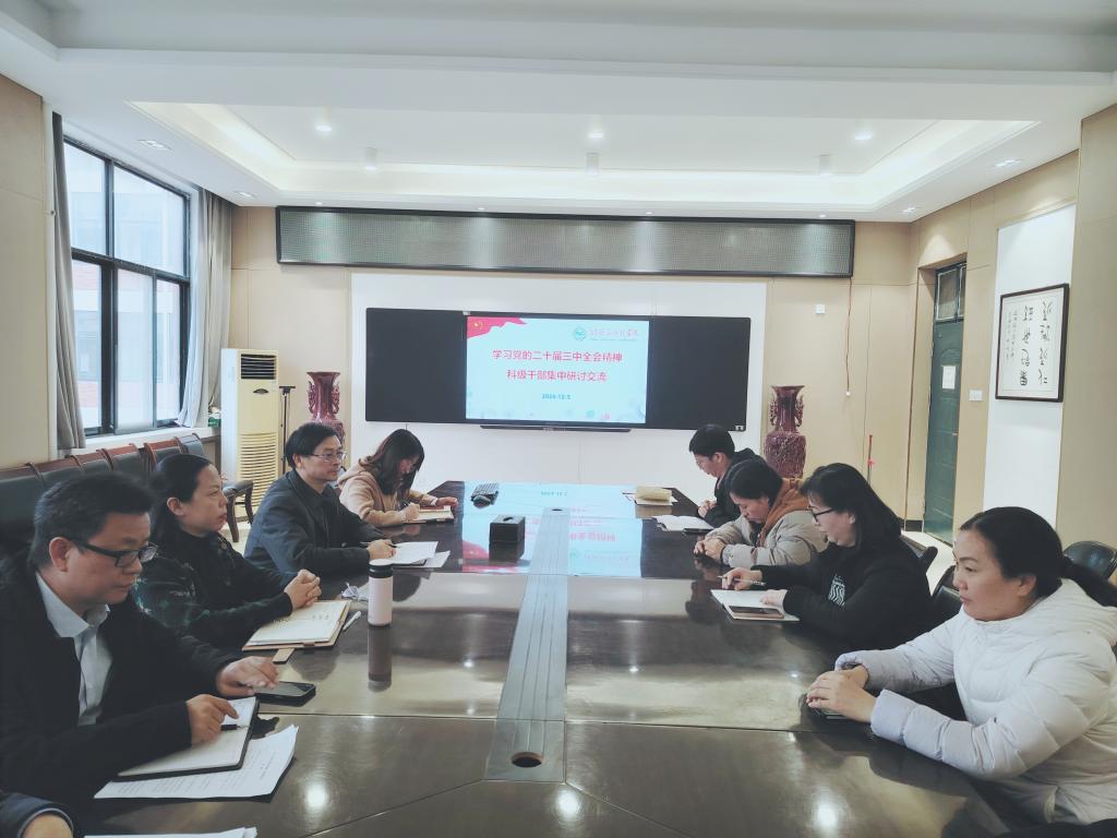 12月5日下午,为进一步学习贯彻党的二十届三中全会精神,按照学校《关于开展科级及以下干部、党员学习贯彻党的二十届三中全会精神培训的通知》,经济与管理学院在10号楼202会议室召开科级干部学习集中研讨交流会,学院班子成员、科级干部参加会议。会议由院党委书记何二毛主持。