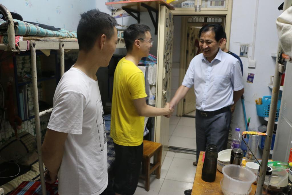 每走进一个学生宿舍,余鹏书记一行人都与同学们进行亲切交谈,仔细地询问毕业生们的考研、就业、生活等情况,并嘱咐考研成功的同学要好好深造,不断扩充知识,提高自身素质,为母校争光;鼓励准备就业的同学们要勤奋踏实、不怕吃苦、努力工作;同时也希望毕业生们均能乘风破浪,实现心中理想,获得美满人生;有时间常回“家”看看,母校的大门随时为他们敞开。最后领导老师们还再三嘱咐毕业生们离校期间要注意自身安全,提高安全防范意识。